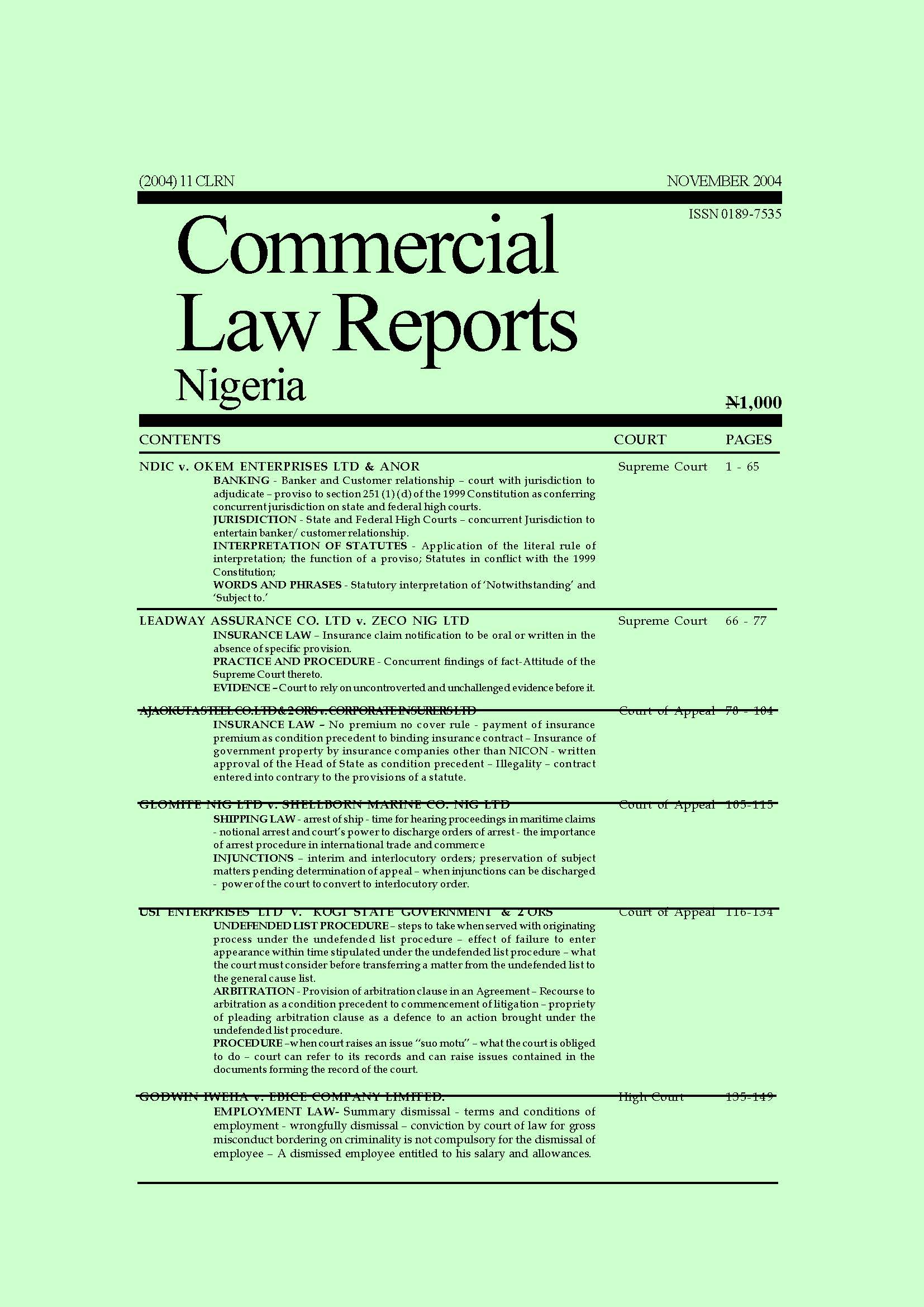 Leadway Assurance Co. Ltd v. Zeco Nigeria Ltd,