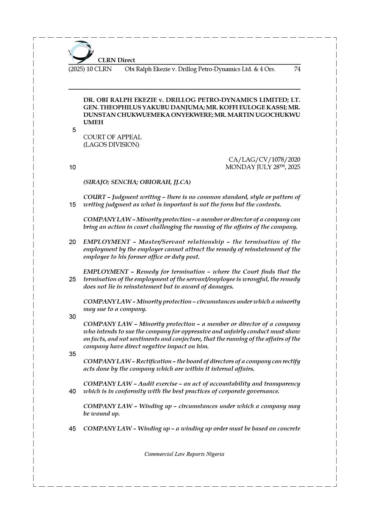 OBI RALPH EKEZIE v. DRILLOG PETRO-DYNAMICS LTD. & 4 ORS.