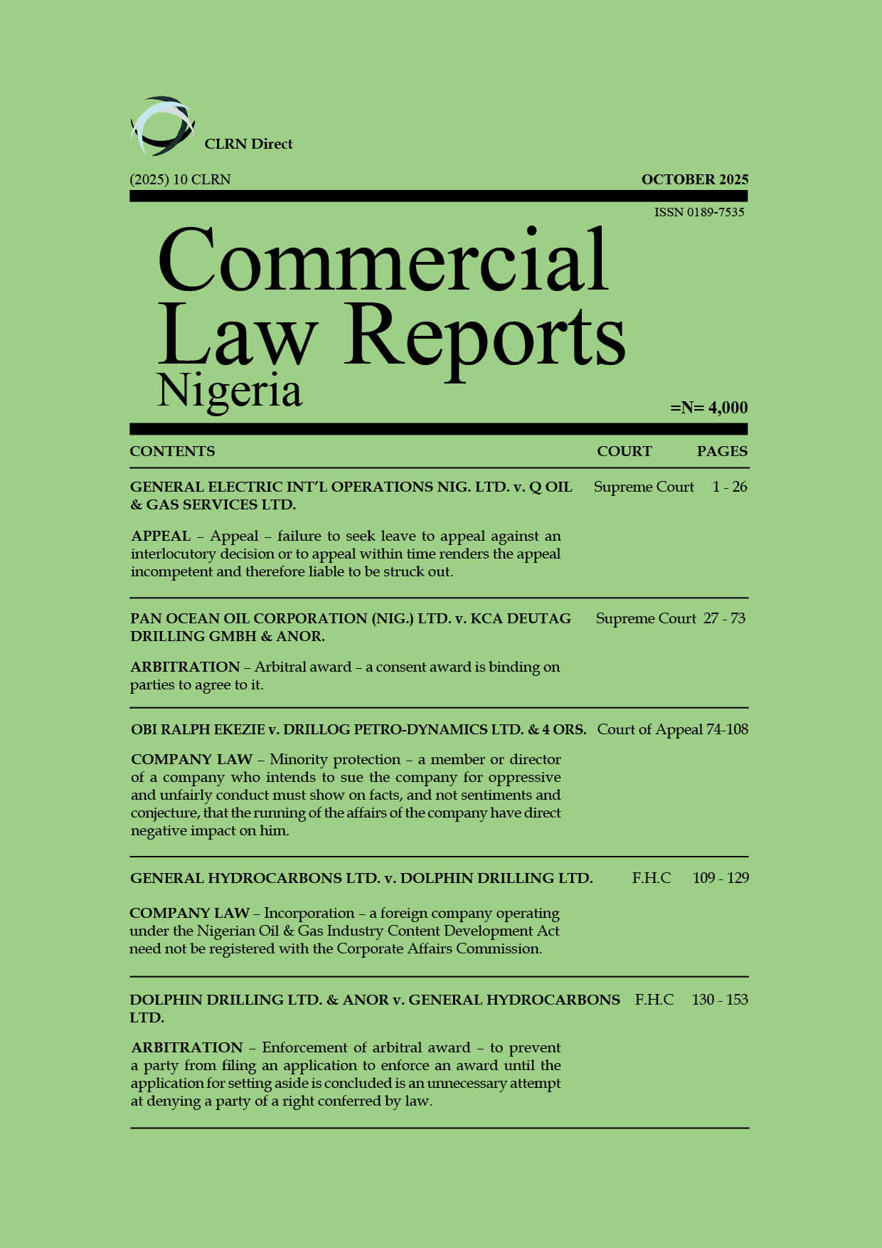 General Electric Int’l Operations Nig. Ltd. v. Q Oil & Gas Services Ltd. (2025) 10 CLRN 1
