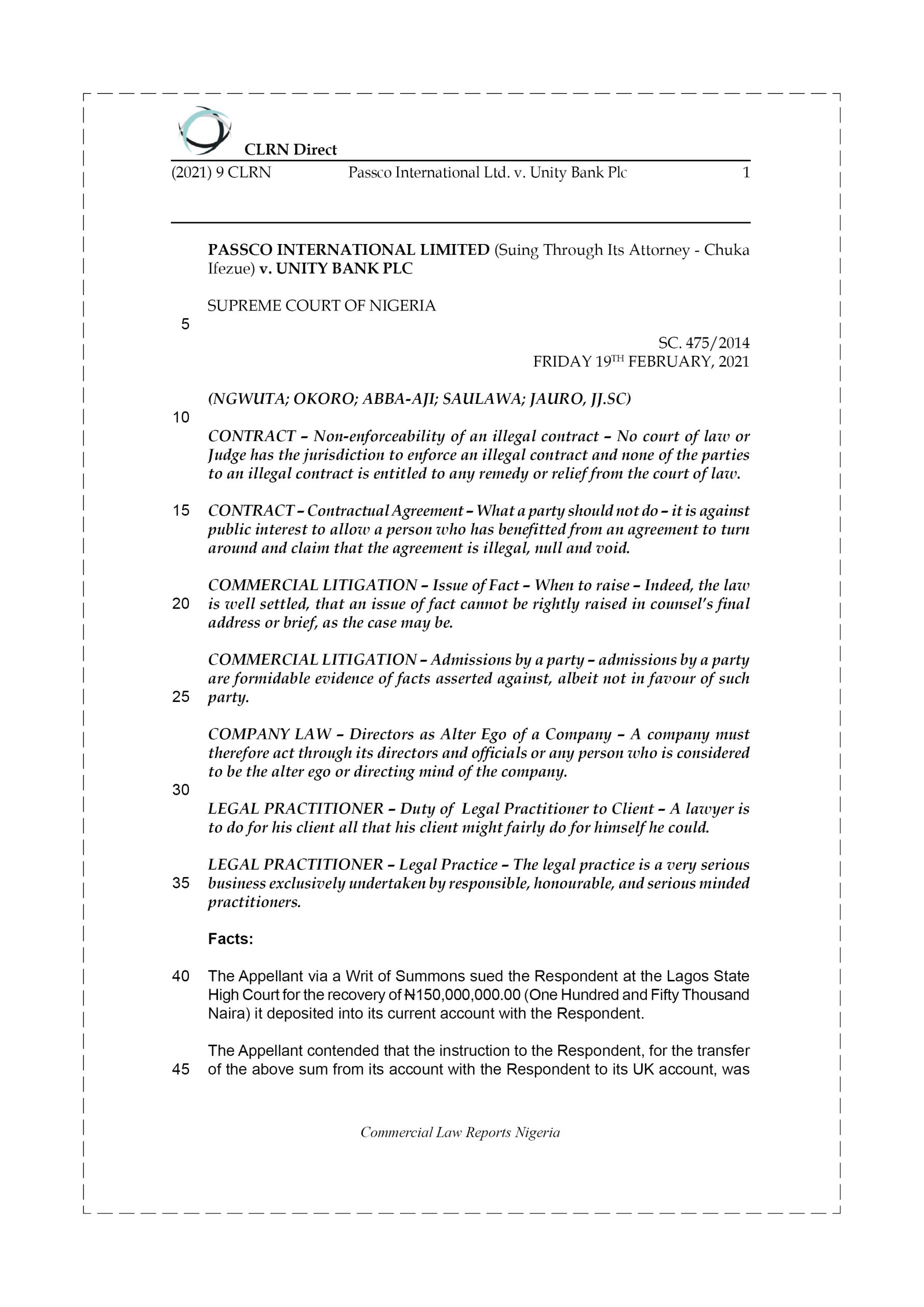 PASSCO INTERNATIONAL LTD. v. UNITY BANK PLC