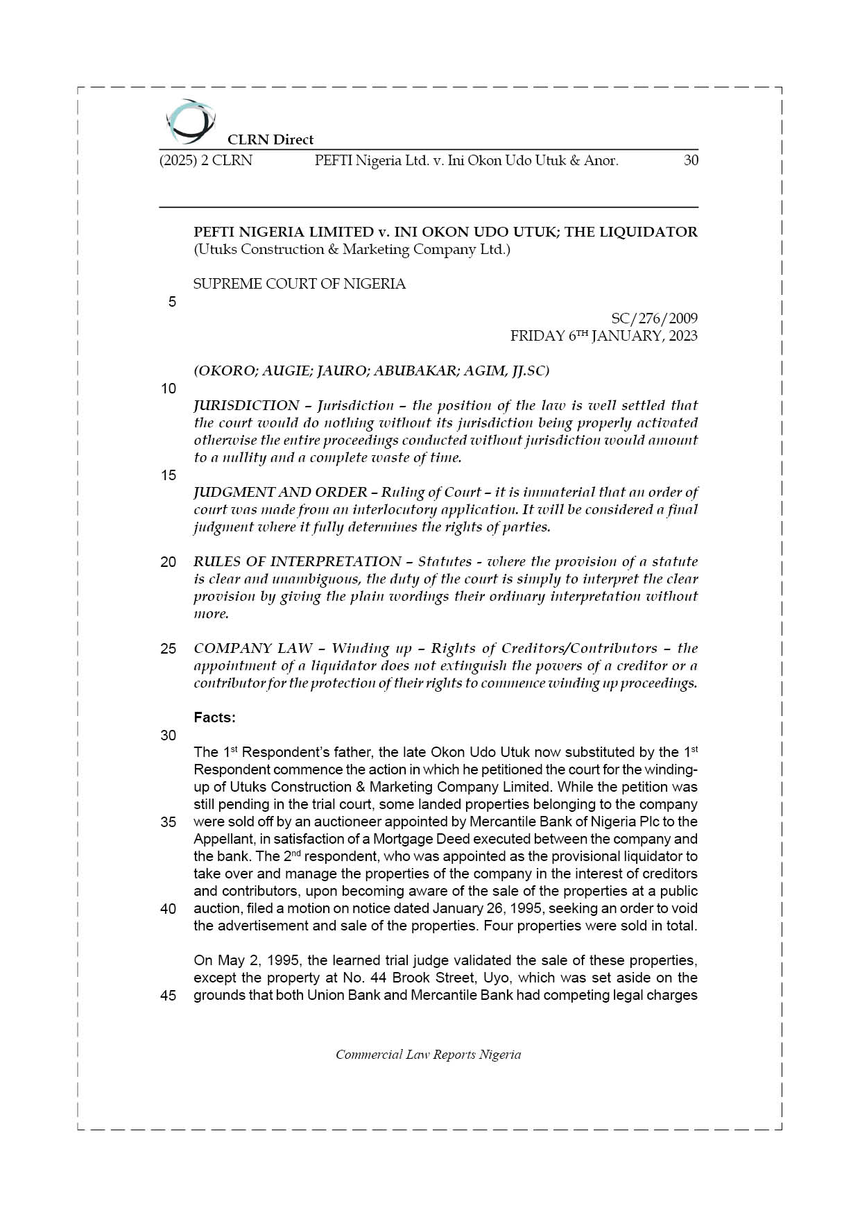 PEFTI NIGERIA LTD. v. INI OKON UDO UTUK & ANOR