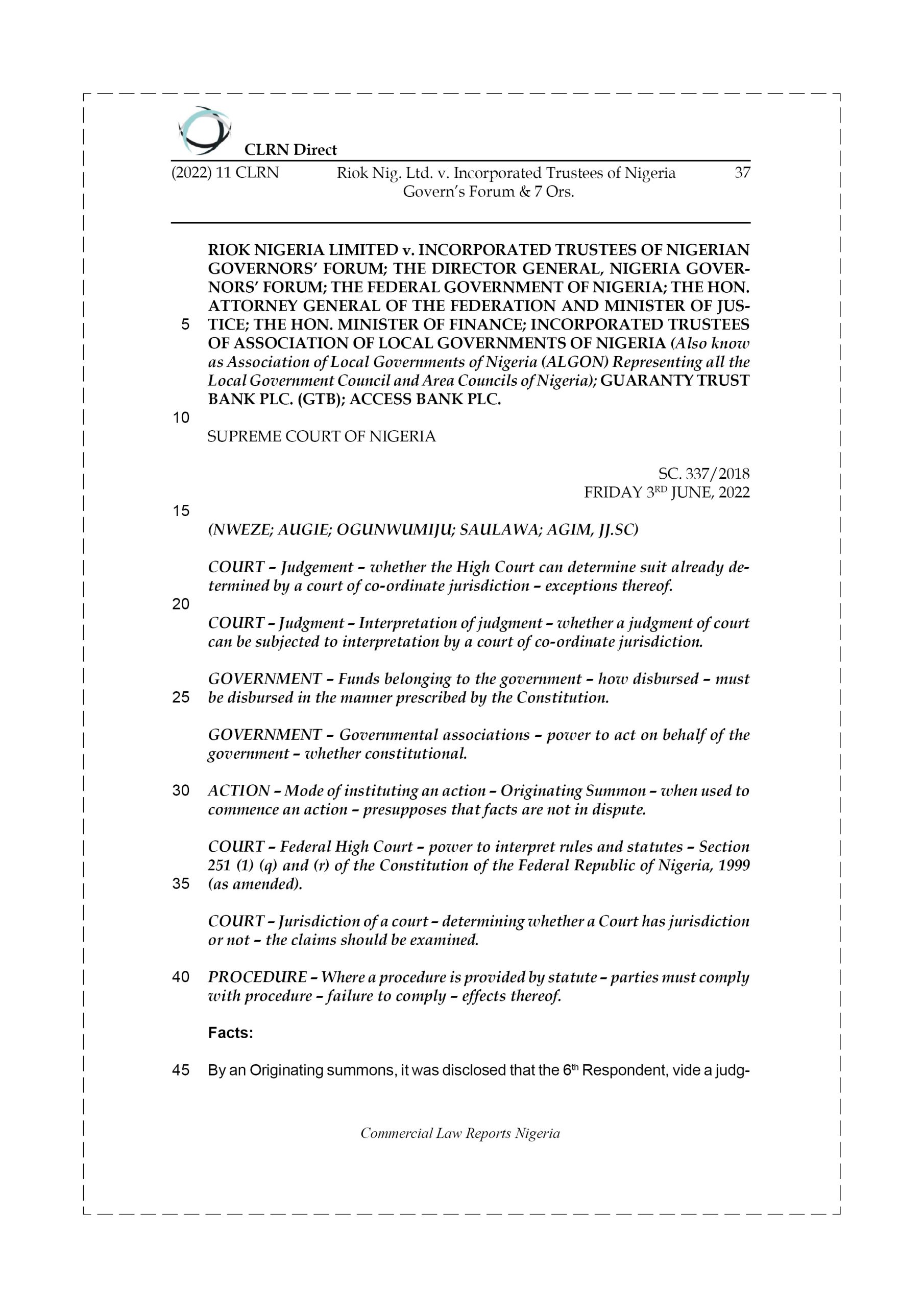 By an Originating summons, it was disclosed that the 6th Respondent, vide a judgment of the Federal High Court in Suit No: FHC/ABJ/CS/130/13, was adjudged entitled, against the 3rd, 4th and 5th Respondents to a sum of $3,188,079,505.96 USD. The 6th Respondent, based on the above judgment debt, awarded to the Appellant, a contract for the drilling of boreholes in seven hundred and seventy-four (774) Local Governments of the Federation, on the agreement that the contract would be funded from the judgment debt above. The Appellant duly commenced the execution of the above contract but following a disagreement which ensued between the Appellant and the 5th respondent, the Appellant instituted a suit at the High Court of the Federal Capital Territory. The High Court of FCT then ordered that the 5th Respondent pay the Appellant the total sum of $797,019,876.49 USD, representing 25% of the judgment sum of $3,188,079,505.96 USD, in Suit No: FHC/ABJ/CS/130/13 between Linas International Limited and 235 Ors. v. The Federal Government of Nigeria and 3 Ors, directing that the appellant must first be paid the sum of $318,807,950,596, USD, from the said fund. The 3rd to 5th Respondents, who had custody of the judgment sum of Suit No: FHC/ABJ/CS/130/13, failed to honour the directive as contained in the order of the High Court of FCT. This then necessitated the suit instituted at the Federal High Court. In its judgment, the trial court held the Appellant was entitled to priority of payment and that the order for priority of payment is an order which bound parties and non-parties to the suit. The trial court found in favour of the Appellant and granted the alternative relief prayed for by the Appellant.