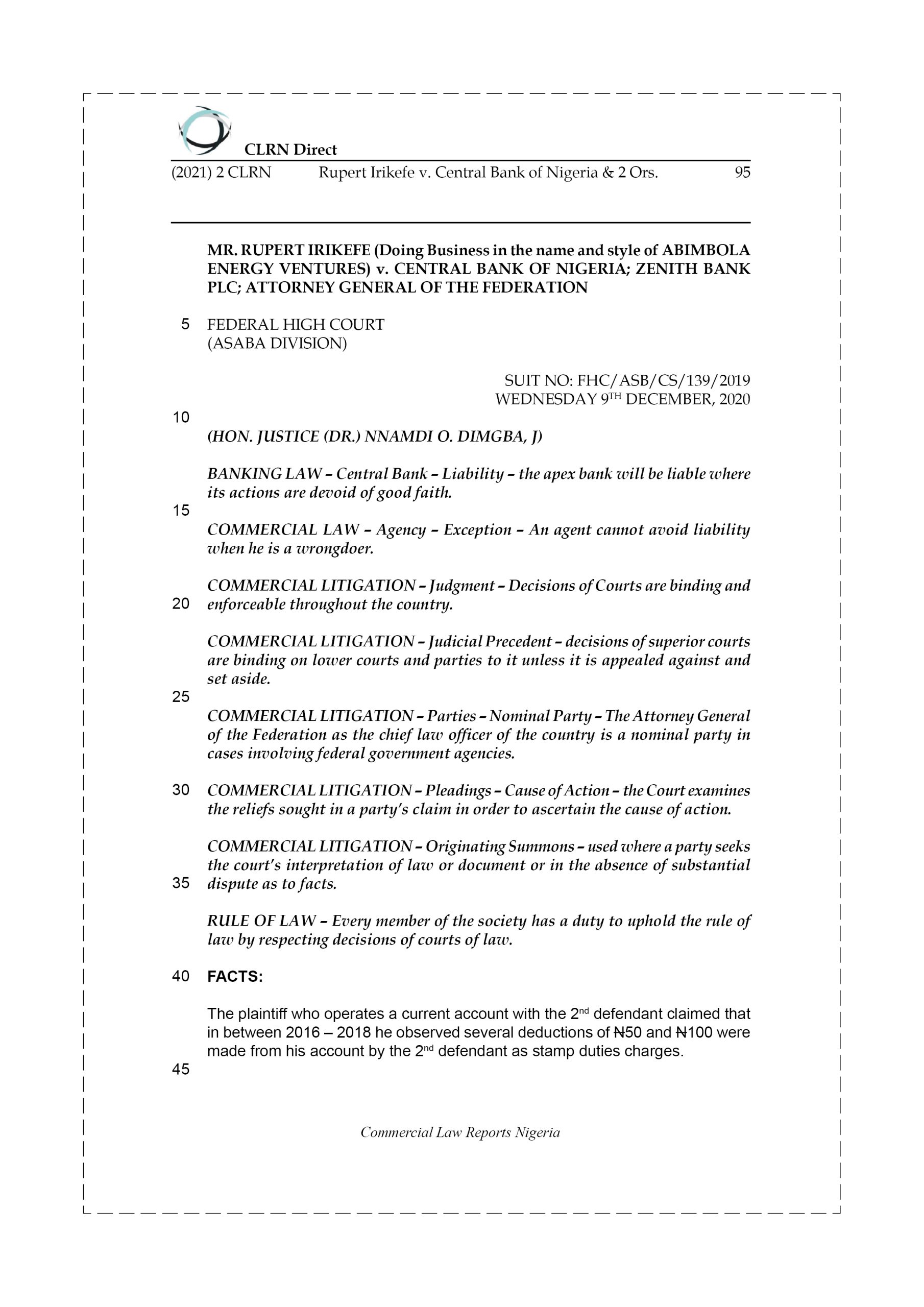 The plaintiff who operates a current account with the 2nd defendant claimed that in between 2016 – 2018 he observed several deductions of N50 and N100 were made from his account by the 2nd defendant as stamp duties charges.