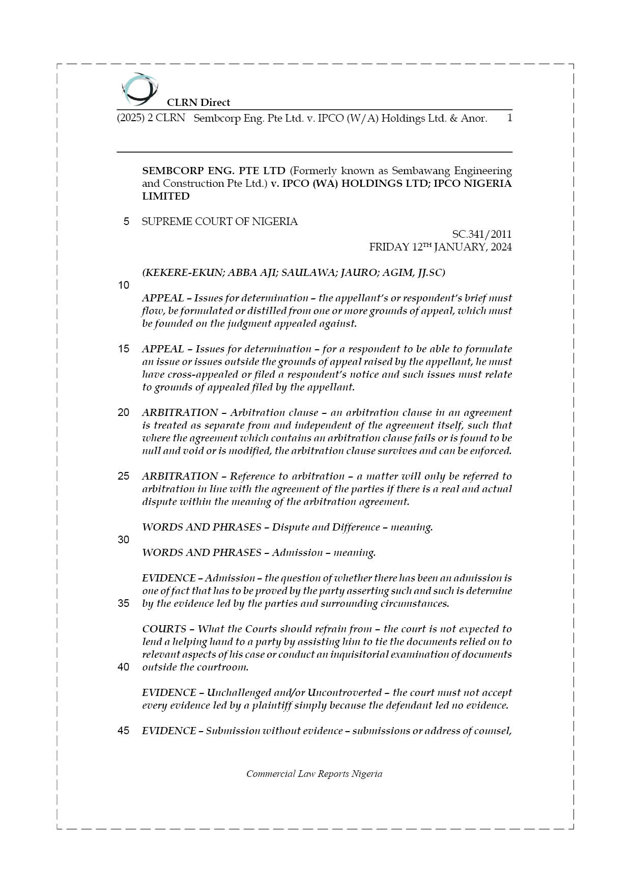 SEMBCORP ENG. PTE LTD. v. IPCO (WA) HOLDINGS LTD. & ANOR