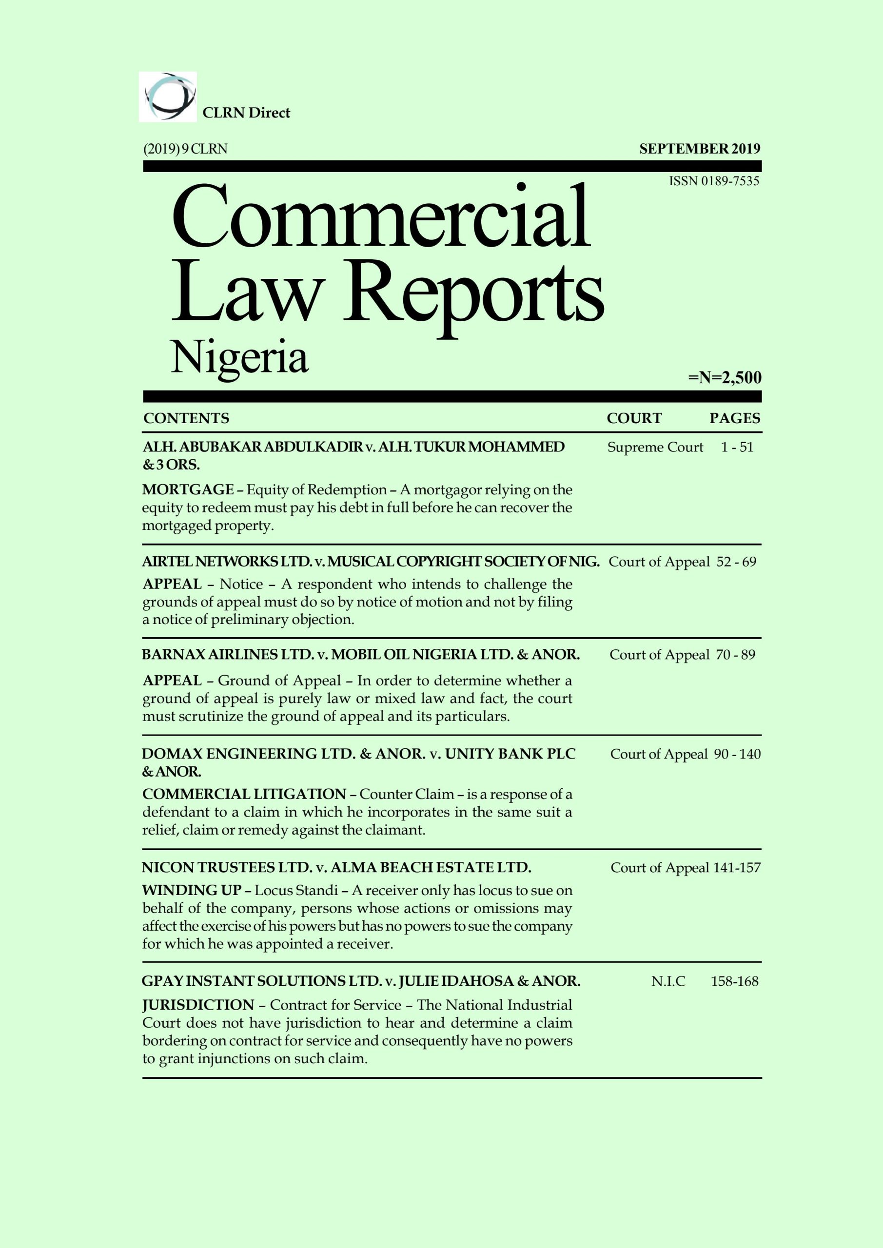 Airtel Networks Ltd. v. Musical Copyright Society of Nig. (2019) 9 CLRN 52,