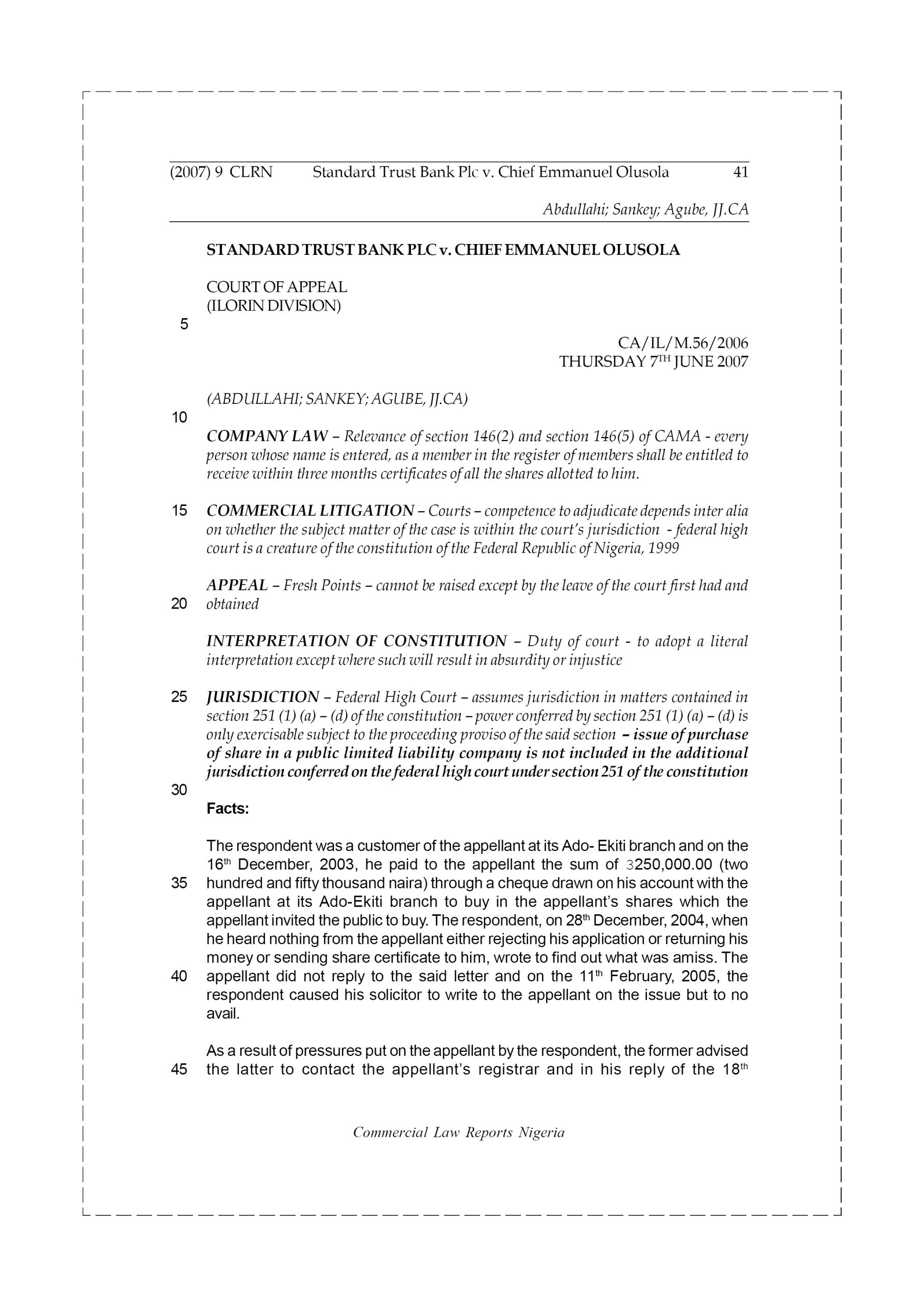 Standard Trust Bank Plc v. Chief Emmanuel Olusola