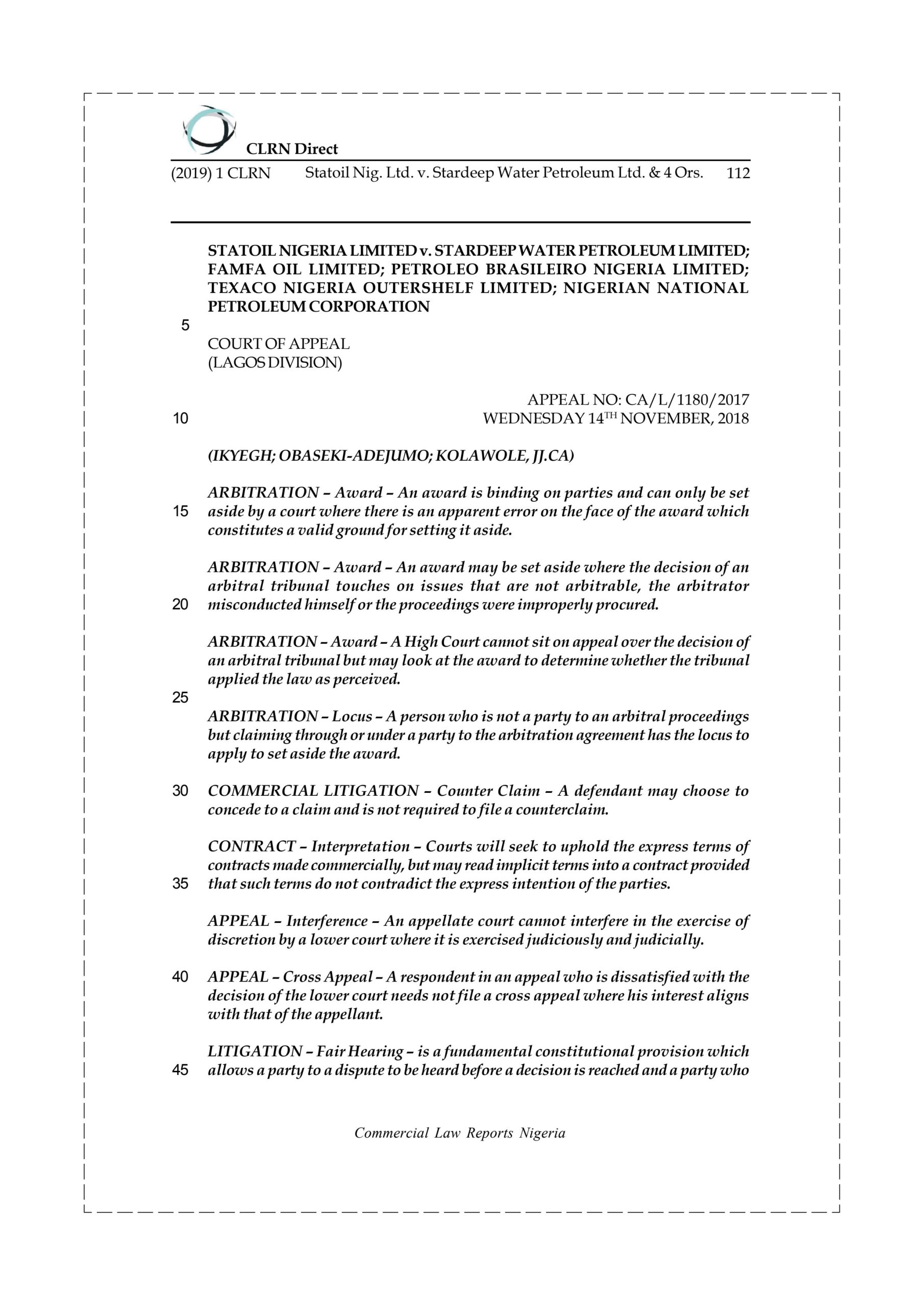 STATOIL NIG. LTD. v. STARDEEP WATER PETROLEUM LTD. & 4 ORS