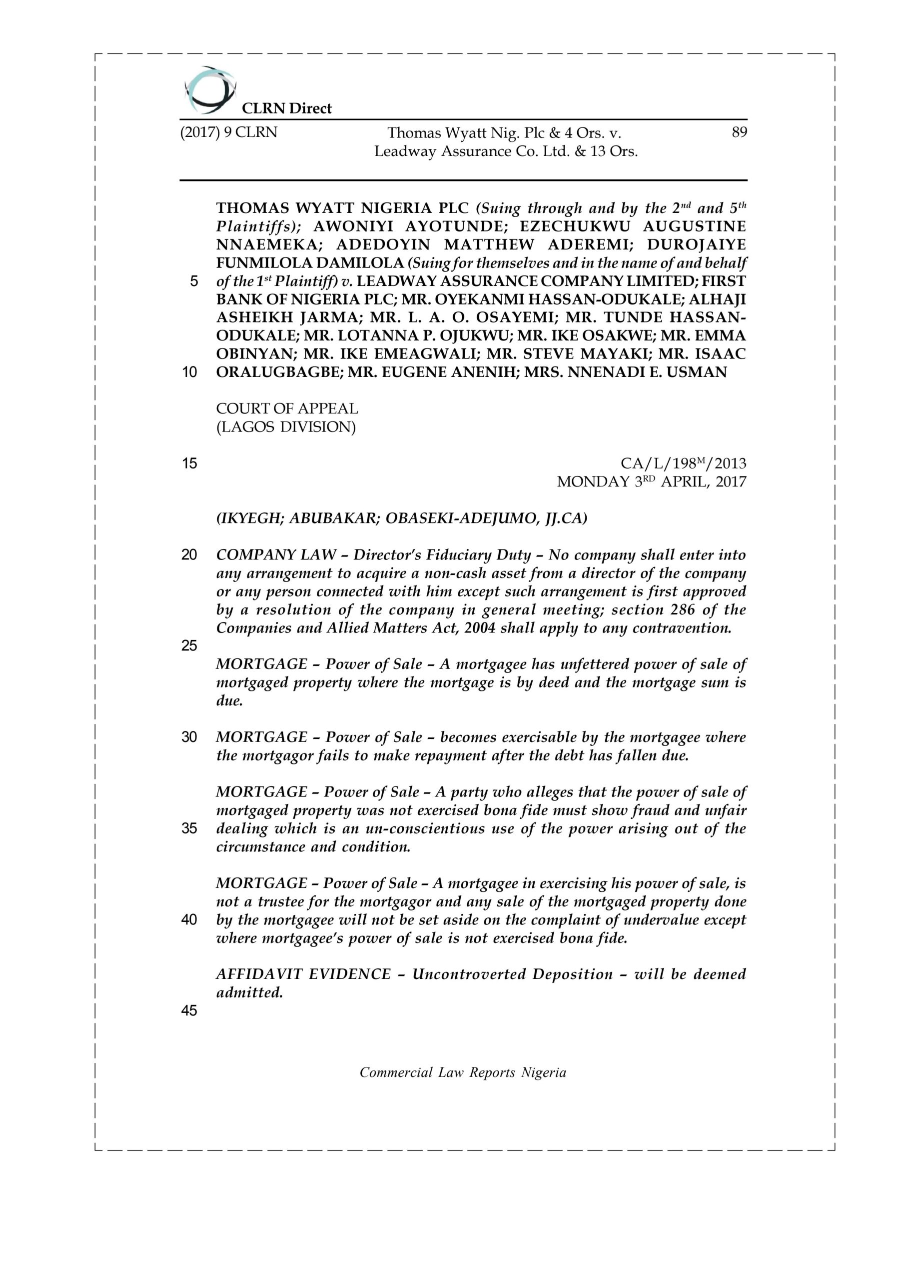 power of sale by the 2nd respondent, the appellants filed an originating summons