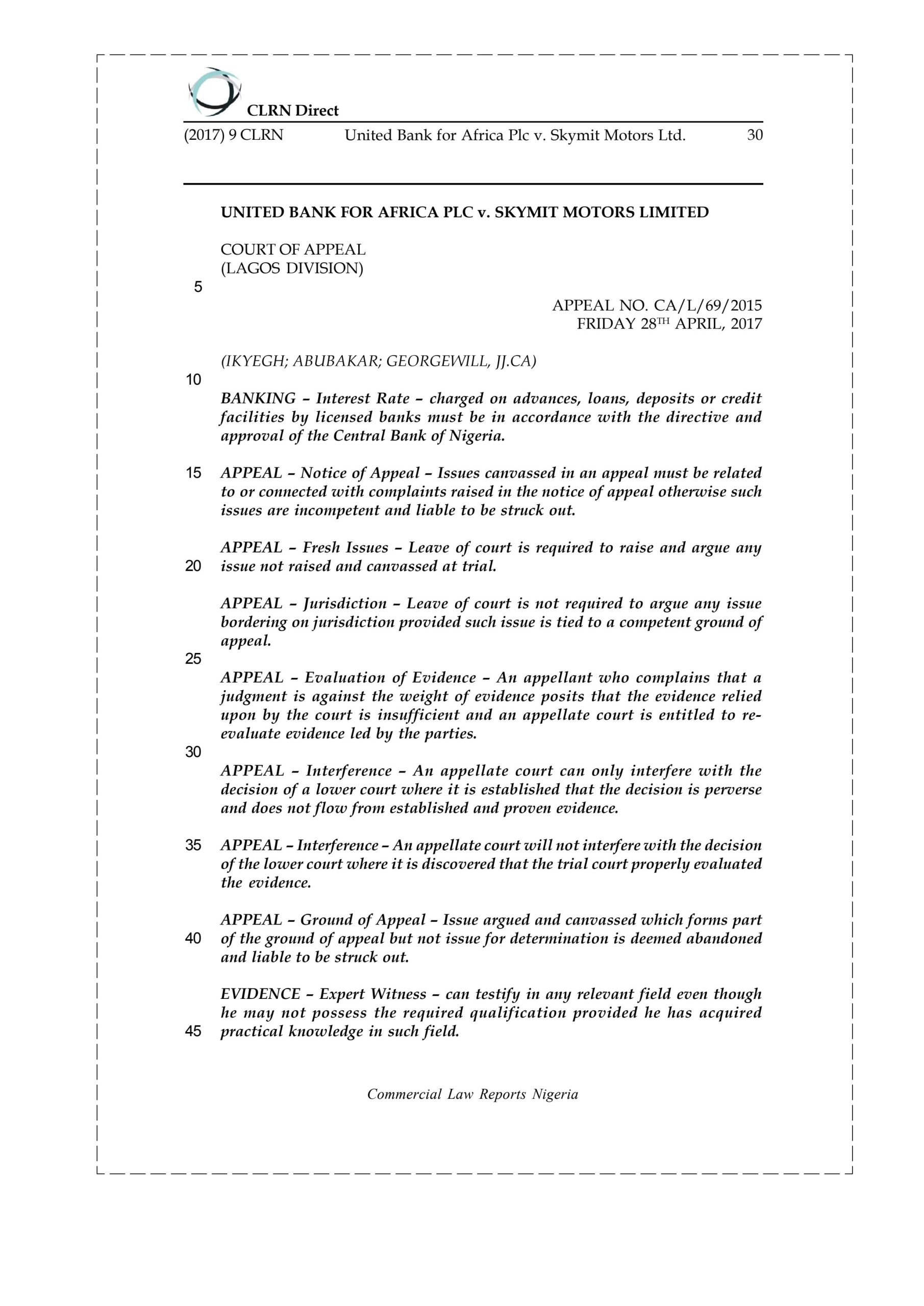 Nigeria regarding transactions and agreement between the parties. When the